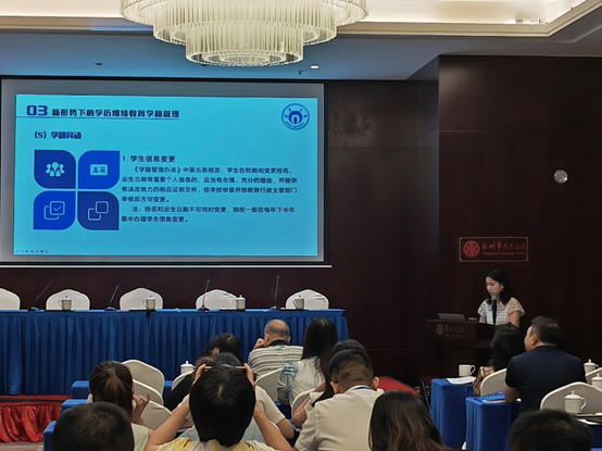 工作会议之后,由继续教育学院赵桂芝副院长主持,会议进行了三个业务专题培训。继续教育学院招生与教务办公室主任汤晓兰、校外教学点管理办公室主任彭金生和湖南世纪超星公司刘人洋分别做了《新形势下财神官方注册校外教学点教学与学籍管理》《新时代下财神官方注册教学点设置与管理》;《财神官方注册校外教学信息化管理系统操作》专题培训。